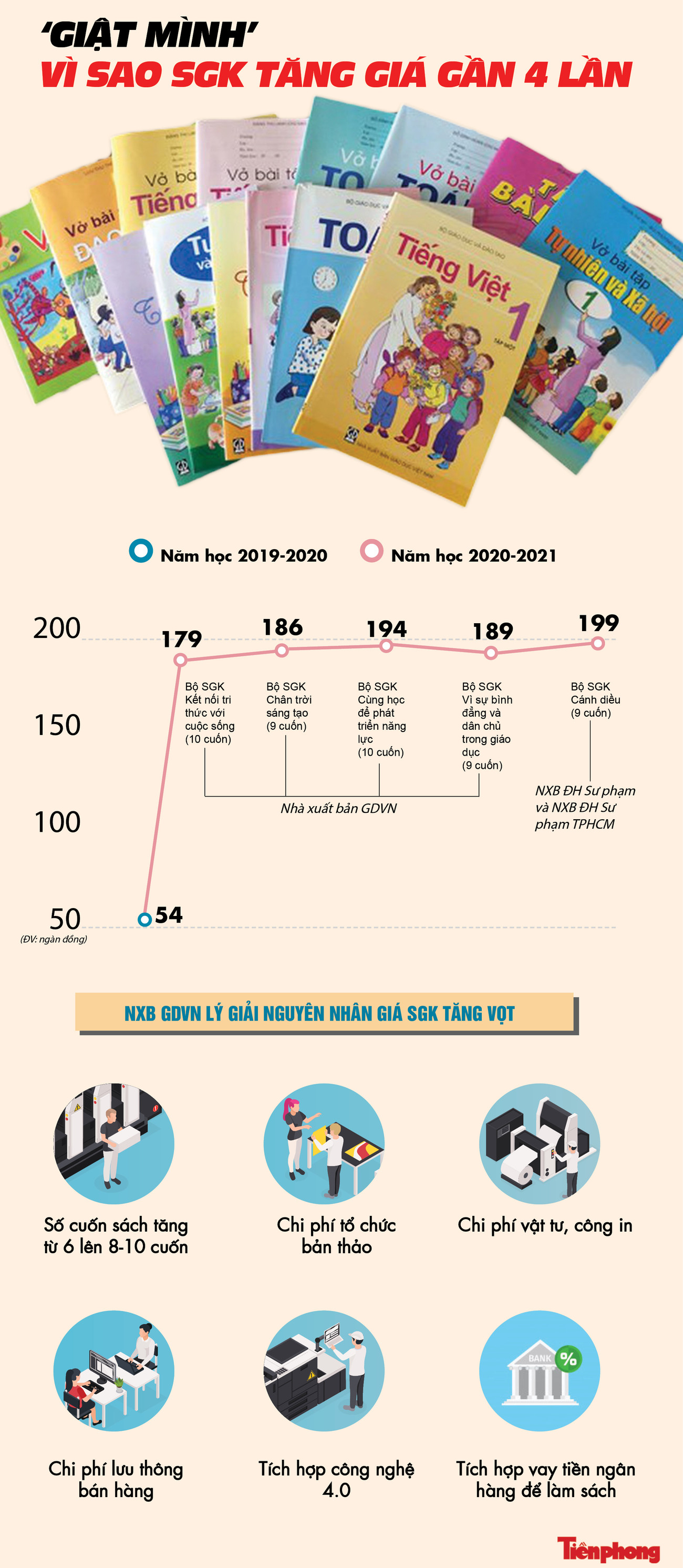 TPO - Giá sách giáo khoa lớp 1 năm tới được các Nhà xuất bản đưa ra tăng chóng mặt, gấp gần 4 lần sách cũ khiến không ít người 'ngã ngửa'.