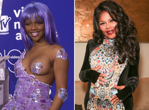 Rapper Lil Kim thay đổi đến mức nhiều người không nhận ra cô. Ca sĩ sinh năm 1975 chỉnh sửa xương gò má, tiêm botox, khiến cấu trúc mặt thay đổi.