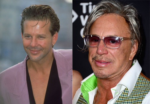 Vào những năm 1980, Mickey Rourke được xem là một trong những gương mặt điển trai trên màn ảnh. Nhiều năm sau, phẫu thuật thẩm mỹ đã làm xô lệch các đường nét trên mặt diễn viên "Iron Man 2". Botox cũng khiến da mặt anh bị phù nề.