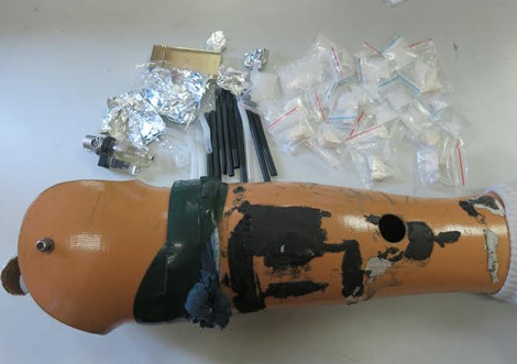 Tại cơ quan Công an, danh tính của đối tượng được xác định là Đỗ Anh Quân, 41 tuổi, trú tại huyện Ứng Hòa – Hà Nội. Khi tháo chiếc chân gỗ của đối tượng để kiểm tra, phát hiện bên trong có 32 gói ni lông các kích cỡ khác nhau, trong đó 7 gói chứa tinh bột màu trắng nghi là heroin, 1 gói chứa 2 viên nén nghi là ma túy tổng hợp và 24 gói khác chứa các tinh thể nghi là ma túy đá.
