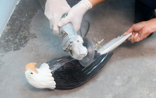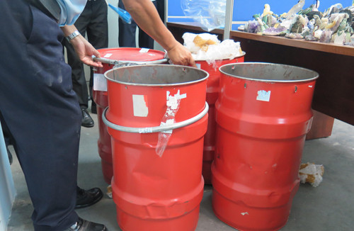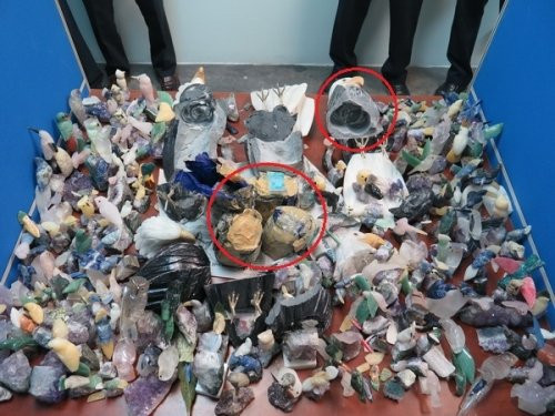 Qua máy soi chiếu và nhiều thông tin kết hợp khác, cơ quan chức năng đã chặn đứng và cho mở lô hàng nói trên. Trong các thùng sắt chứa đựng hàng trăm bức tượng đá hình con đại bàng. Phải dùng máy cắt đá phá vỡ các bức tượng mới tìm thấy các bọc nilon chứa ma túy được cất giấu bên trong.