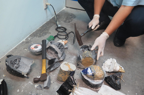 Đối tượng giấu ma túy đã ngụy trang một cách tinh vi, nhiều tượng đá được phá vỡ và có 4 tượng đá có giấu ma túy.