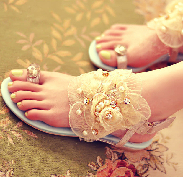 Mẫu sandal hay giày búp bê đế bệt cũng được nhà thiết kế lưu tâm đến là dành cho cô dâu mới đi nghỉ tuần trăng mật, đôi sandal giúp bạn bước đi trên bãi biển hoặc dạo phố một cách thoải mái nhất.