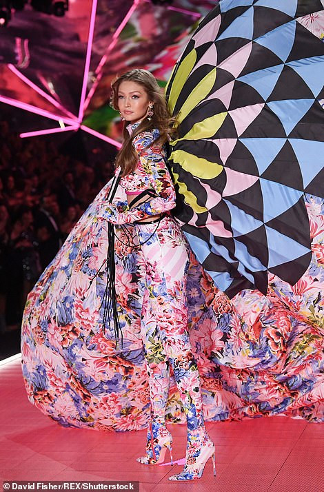Trang phục thứ 2 Gigi mặc nằm trong BST nội y Victoria's Secret hợp tác cùng nhà thiết kế Mary Katrantzou.