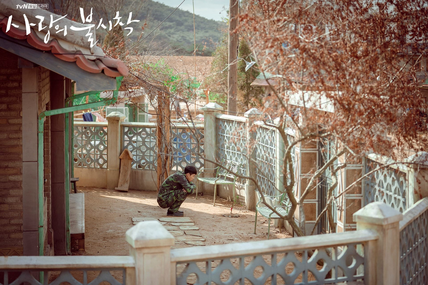 Chiếc bàn trước hiên nhà là nơi Yoon Seri ngồi ăn và trò chuyện cùng các anh lính Triều Tiên.