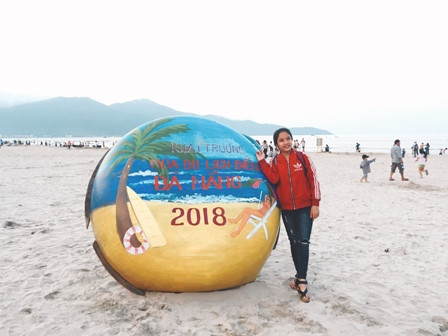 Bạn Hằng, sinh viên ĐH Sư phạm Đà Nẵng, chia sẻ: “Lần đầu tiên mình thấy chiếc thúng đẹp, độc đáo và ấn tượng như thế này. Mình đã đến đây chơi thì không thể ra về tay không mà phải “check in” để có được bộ ảnh tuyệt vời làm kỷ niệm”.