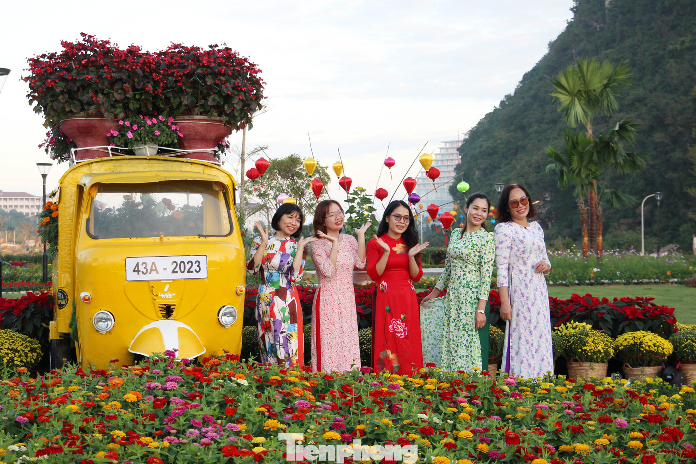| Dù vẫn chưa hoàn thiện nhưng vườn hoa vẫn thu hút rất đông gia đình trẻ, các bạn trẻ... đến tham quan, chụp hình check in dịp Tết. |