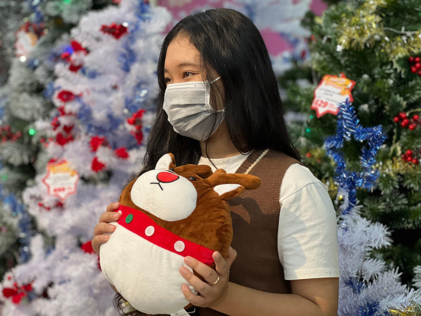 | Thời tiết se lạnh, nhiều bạn trẻ diện áo len phong cách Giáng sinh tới cửa hàng bán đồ trang trí Noel chụp hình. |