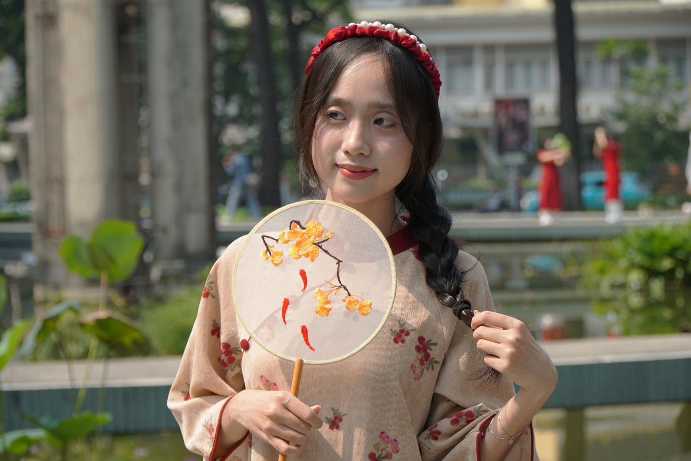 | Không chỉ áo dài truyền thống, nhiều mẫu áo dài cách tân cũng được các bạn trẻ lựa chọn cho bộ ảnh Tết của mình. |