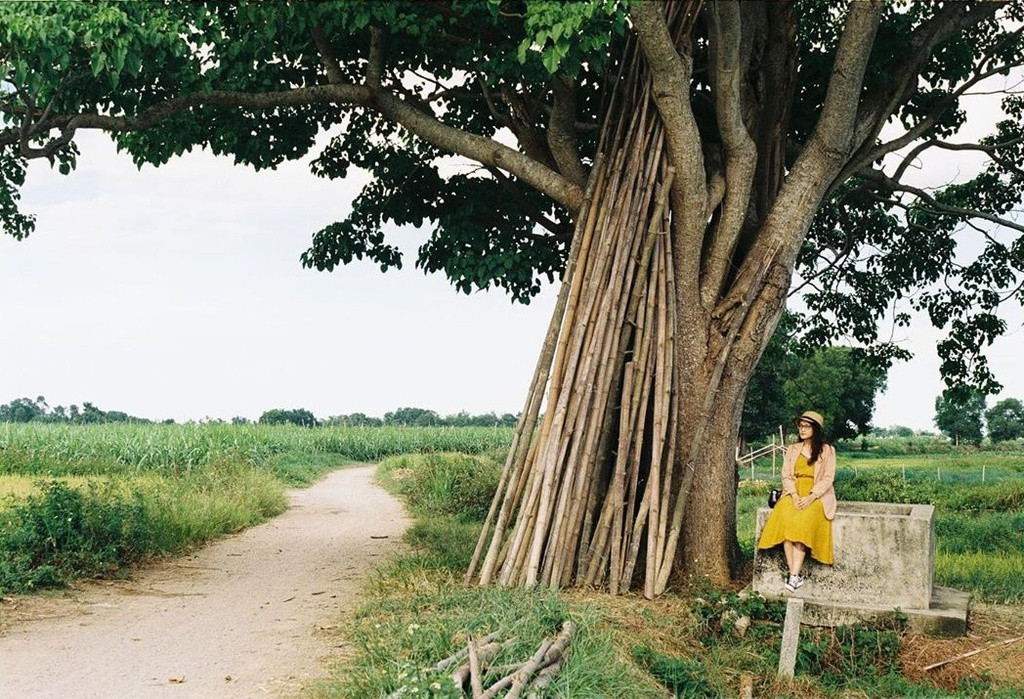 Con đường đất, ruộng mía mênh mông... tại xóm Chùa cũng là những góc check-in hấp dẫn, mang đậm nét làng quê bình dị. Nhiều cặp đôi sắp cưới cũng tranh thủ tới đây để chụp ảnh kỷ niệm. Cây cô đơn trở thành phông nền sống ảo tuyệt đẹp cho bộ ảnh cưới độc đáo.