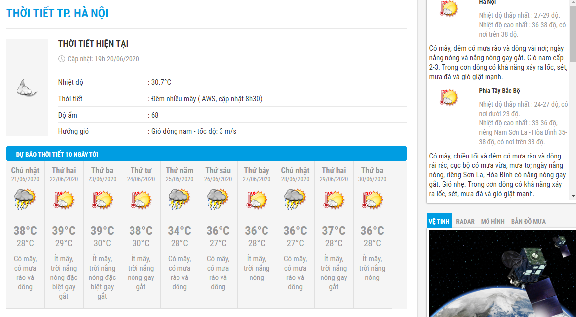 Trung tâm dự báo khí tượng thủy văn thông báo thời tiết Hà Nội mấy ngày tới (Ảnh chụp màn hình)