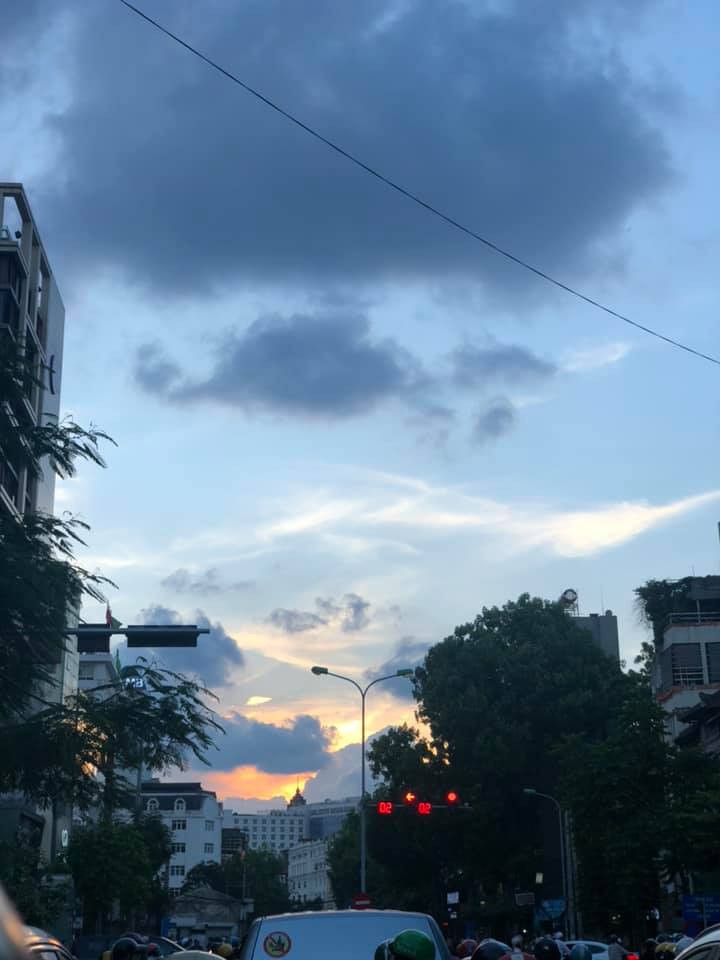 Đường Tôn Đức Thắng, đám mây ngũ sắc xuất hiện lung linh kỳ ảo (Ảnh: FB Chuyện của Hà Nội)