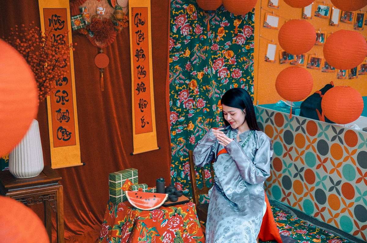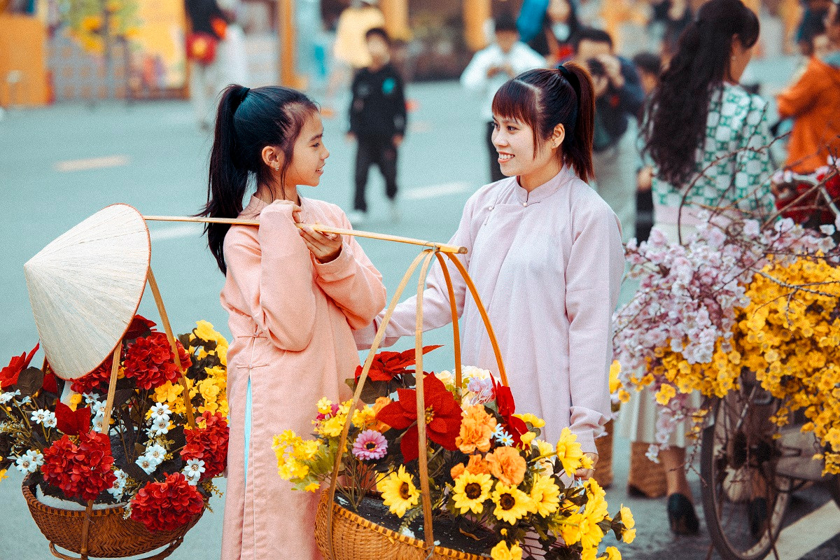 | Hội chị em nô nức trong tà áo dài mang phong cách “Cô Ba Sài Gòn” rực rỡ màu sắc, thả dáng trong chợ Tết Vinhomes Ocean Park 2 |