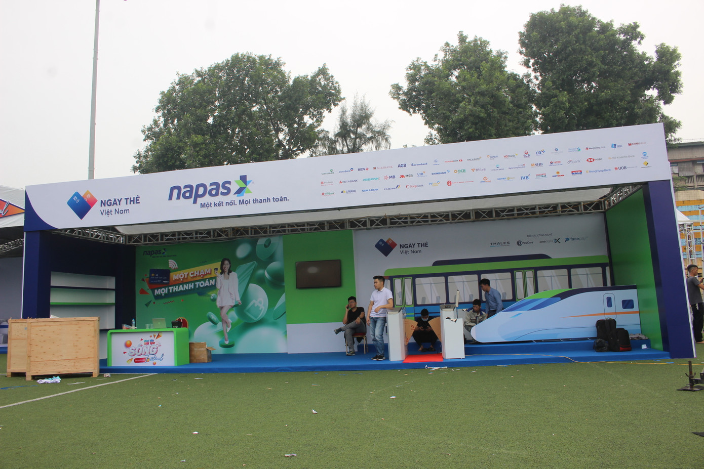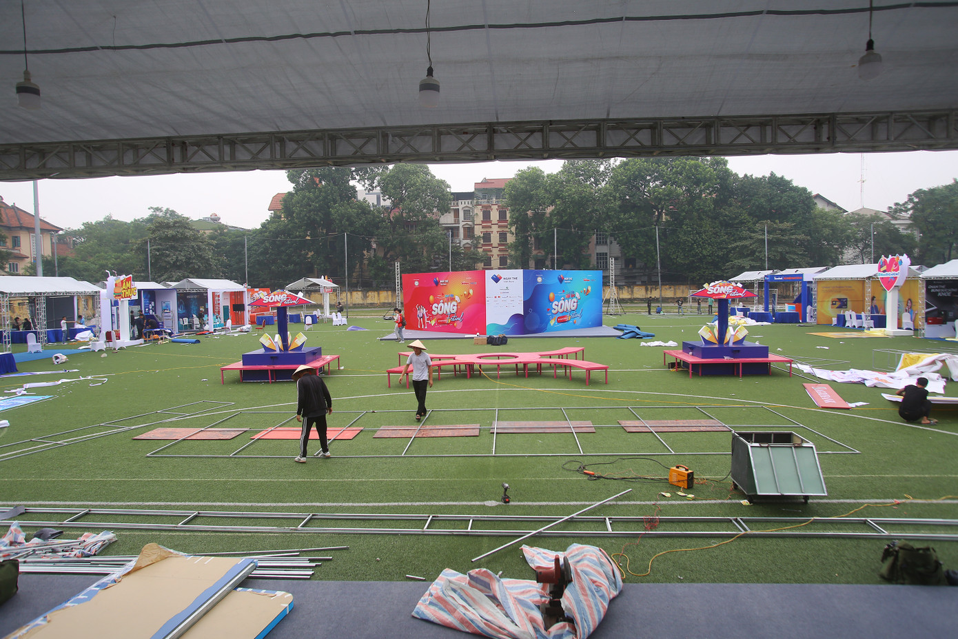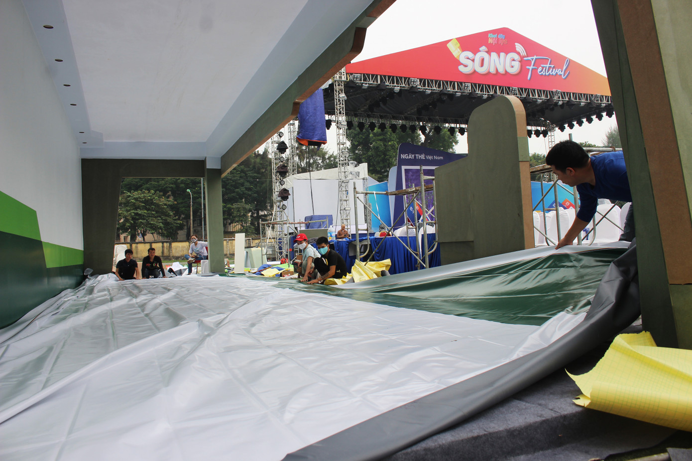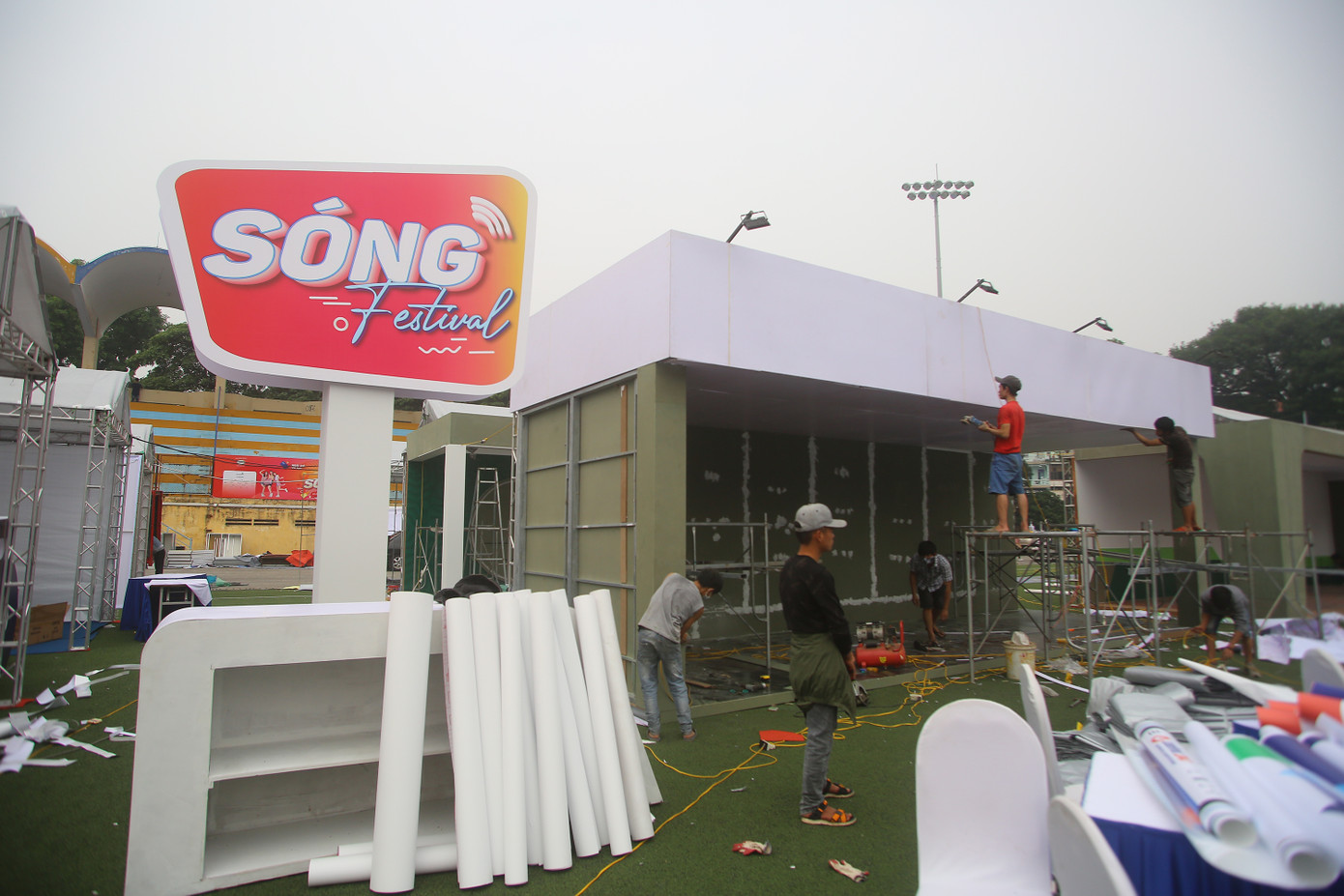 Đến trưa 6/11, công tác chuẩn bị cho Lễ khai mạc Ngày Thẻ Việt Nam 2020- Sóng Festival (lễ hội giải trí & mua sắm) vào sáng 7/11 tại Sân vận động Bách Khoa A1 Lê Thanh Nghị bước vào giai đoạn nước rút.