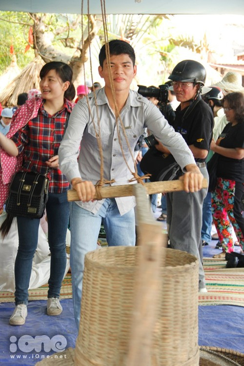 Trong khi đó, nhiều bạn trẻ ''sống lại tuổi thơ'' với các nông cụ truyền thống như máy xát lúa.
