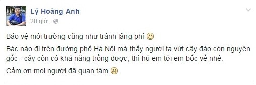 Hoàng Anh (24 tuổi, Hà Nội) cũng hô hào mọi người cho cây cảnh sau dịp Tết trên trang cá nhân.