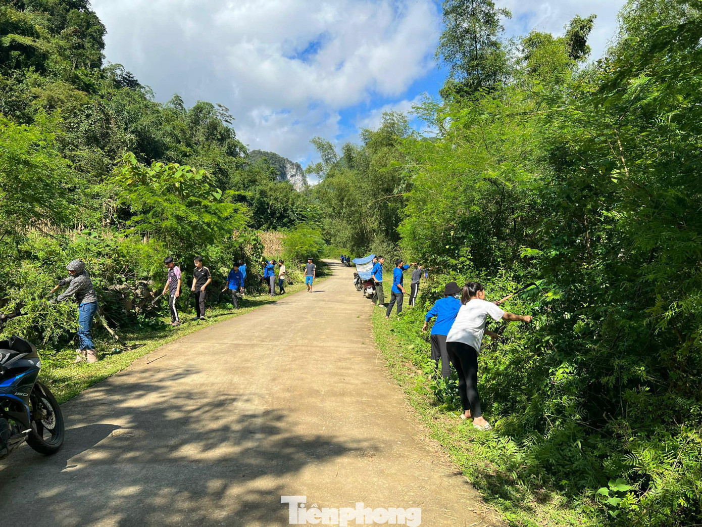| Các đội hình tình nguyện tham gia dọn dẹp vệ sinh, phát quang đường làng, ngõ xóm, nơi công cộng. |