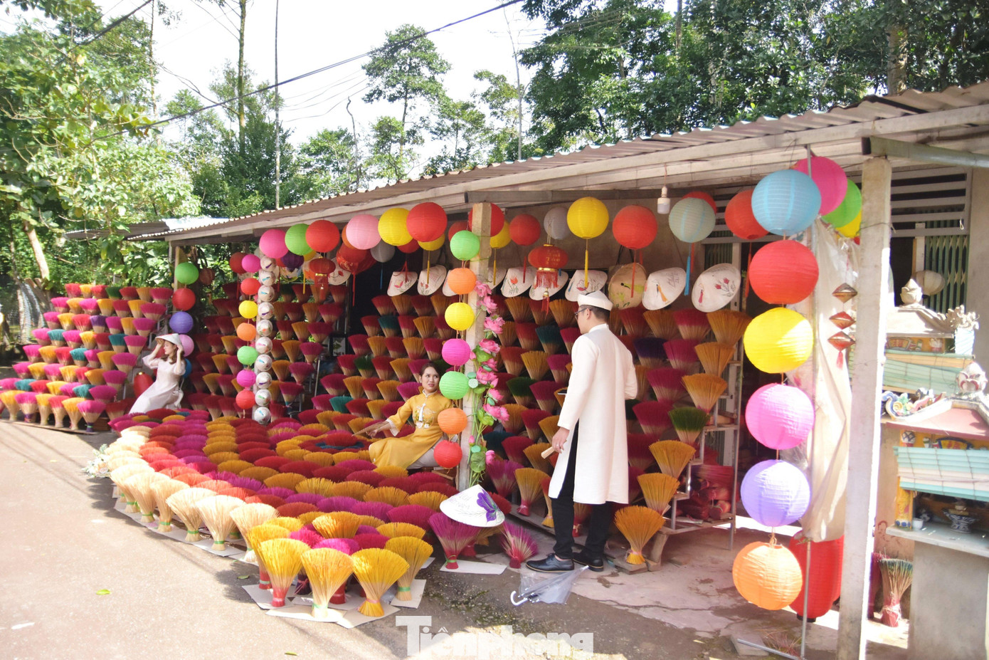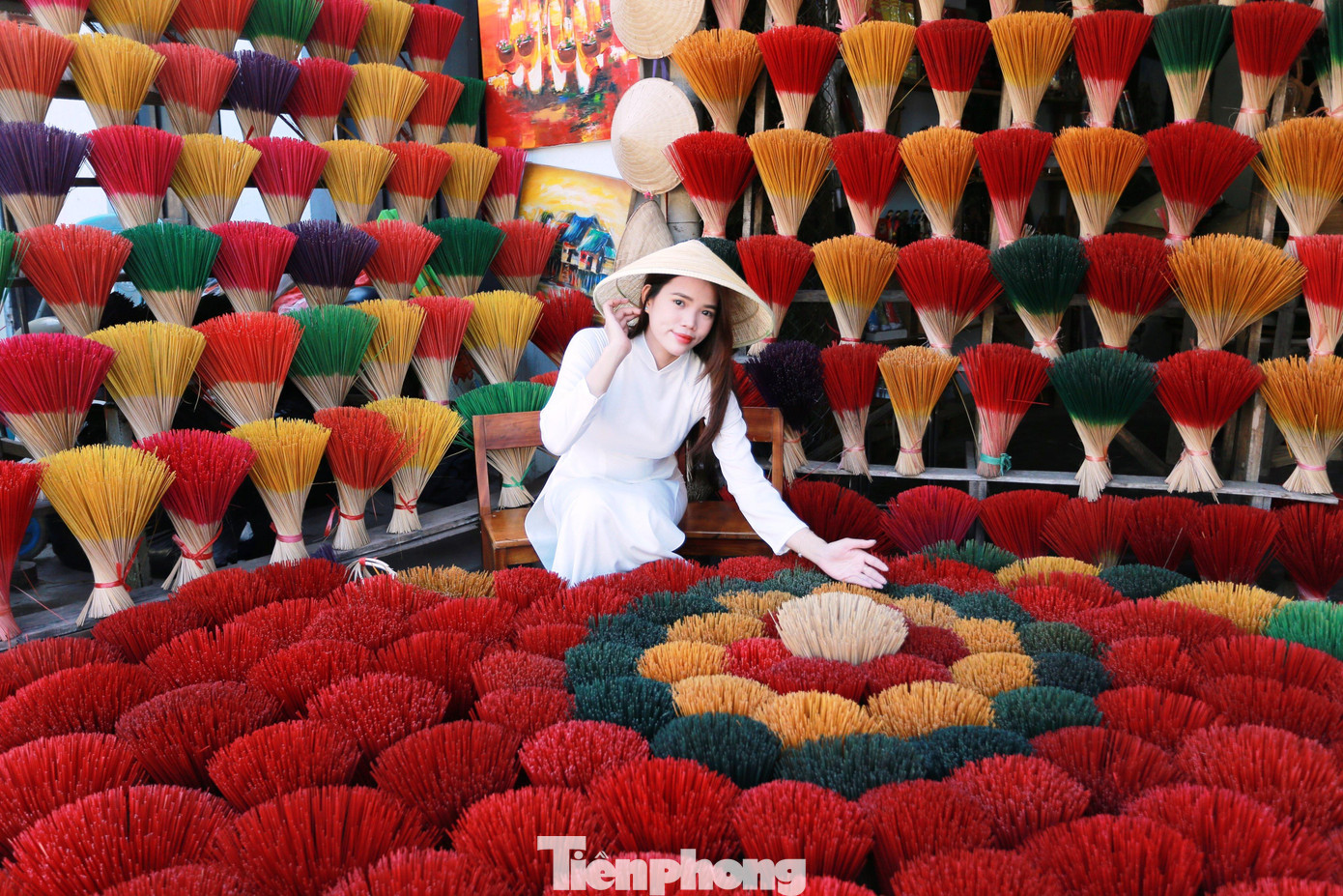 | Vào những ngày nắng lên, có dịp ngang qua làng hương Thủy Xuân, các bạn trẻ không khỏi trầm trồ, bị thu hút bởi những nguyên liệu sản xuất và sản phẩm hương trầm thành phẩm nhiều màu sắc được phơi phóng, bài trí tinh tế, khéo léo như một studio lớn dành cho những ai mê nhiếp ảnh, chụp hình lưu niệm. Ảnh: NSNA Thiên Minh |