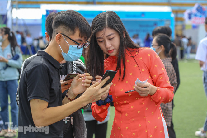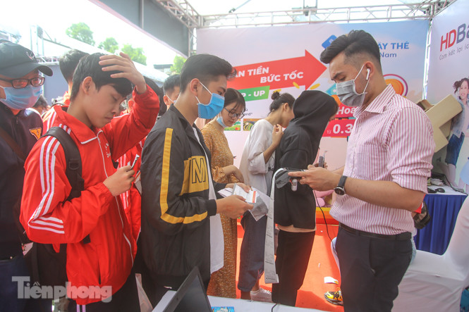 Các bạn sinh viên xếp hàng dài tại một gian hàng cho thấy sức nóng của Ngày thẻ Việt Nam 2020.
