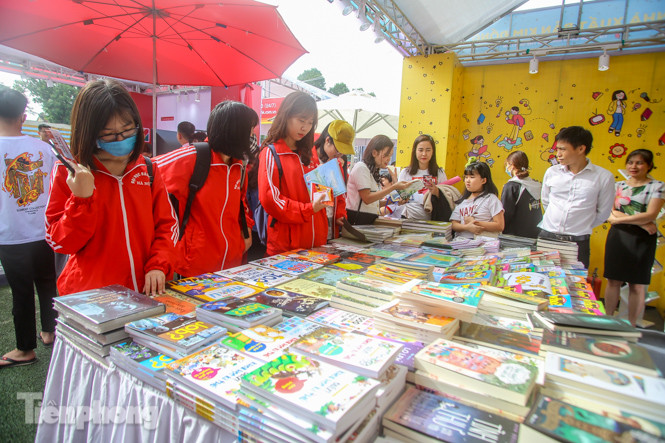 Quầy sách thu hút đông đảo các bạn sinh viên tham quan.