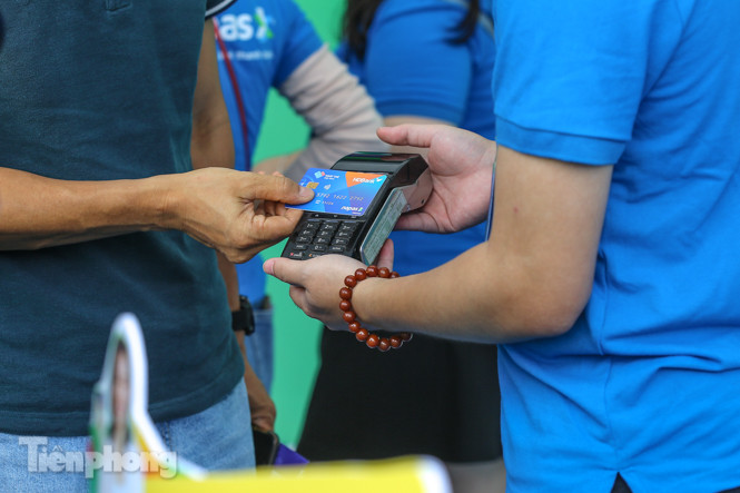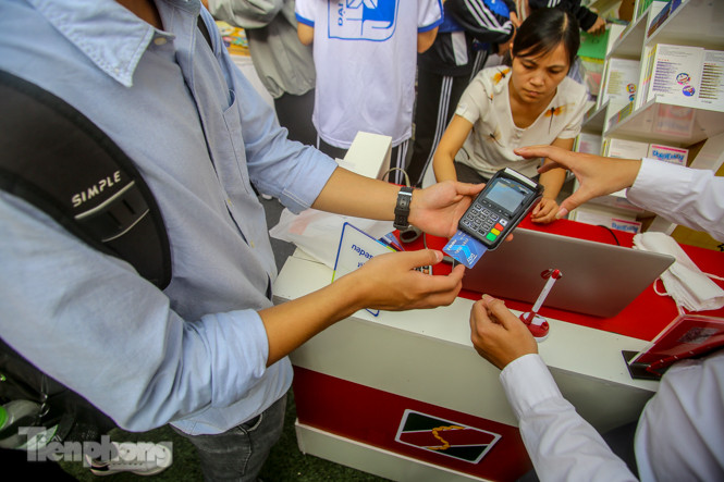 Bạn Hoàng Thành, sinh viên năm ba trường ĐH Bách Khoa cho biết đây là trải nghiệm thú vị. "Thanh toán như này em thấy rất nhanh gọn, thay vì cầm cả đống tiền thì chỉ cần một chiếc thẻ gắn chíp là có thể mua được mọi thứ", bạn Thành chia sẻ.