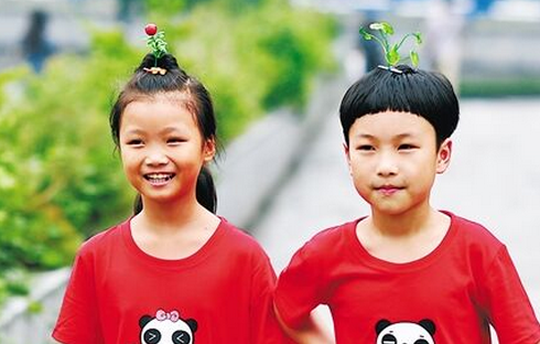 Hai cây xinh xinh mọc trên đỉnh đầu 2 em bé