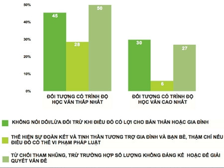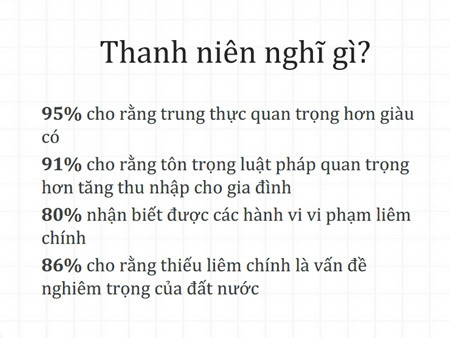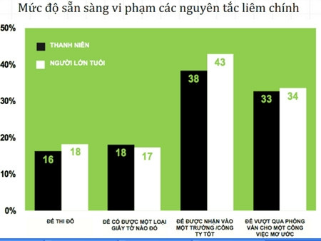 Đối với thanh niên có học vấn thấp, tôi nghĩ không thể lên án họ, mà do cuộc sống bắt buộc, họ cần thoả hiệp để tồn tại. Một con số khác là với công việc càng quan trọng thì tỉ lệ người muốn thỏa hiệp càng cao.