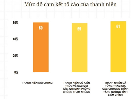 Nghiên cứu cũng cho thấy mức độ cam kết tố cáo của thanh niên chưa từng tham gia vào những chương trình giáo dục, tăng cường liêm chính, và của thanh niên đã qua những khoá tập huấn này, là tương đương nhau, đều ở mức độ trên dưới 60%.