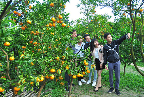 Bạn trẻ chụp ảnh bên quýt hồng Tại vườn của ông Hai Kiệt ở ấp Long Khánh A, xã Long Hậu (Lai Vung, Đồng Tháp) thu hút đông khách. Ông Đoàn Anh Kiệt là chủ vườn cho biết, năm nay vườn thất thu, giảm 20% so năm ngoái do cây chết nhưng bù lại giá thị trường cao gấp rưỡi, thời điểm này dao động từ 35.000 đồng – 40.000 đồng/kg. Hiện tại, khu vườn của ông có 0,6 ha quýt hồng, dự kiến sẽ cho thu hoạch khoảng 15 tấn.