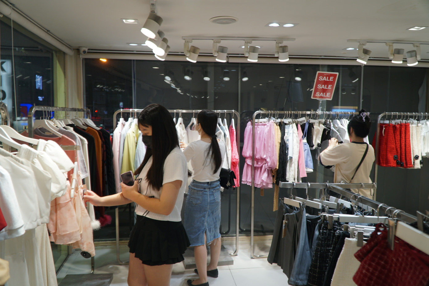 | So với các sàn thương mại điện tử, giá các mặt hàng thời trang tại khu phố này vẫn "nhỉnh" hơn. Tuy vậy, nhiều người vẫn muốn tới lựa chọn, mua trực tiếp để có thể xem kỹ chất liệu, mẫu mã, kiểu dáng. |