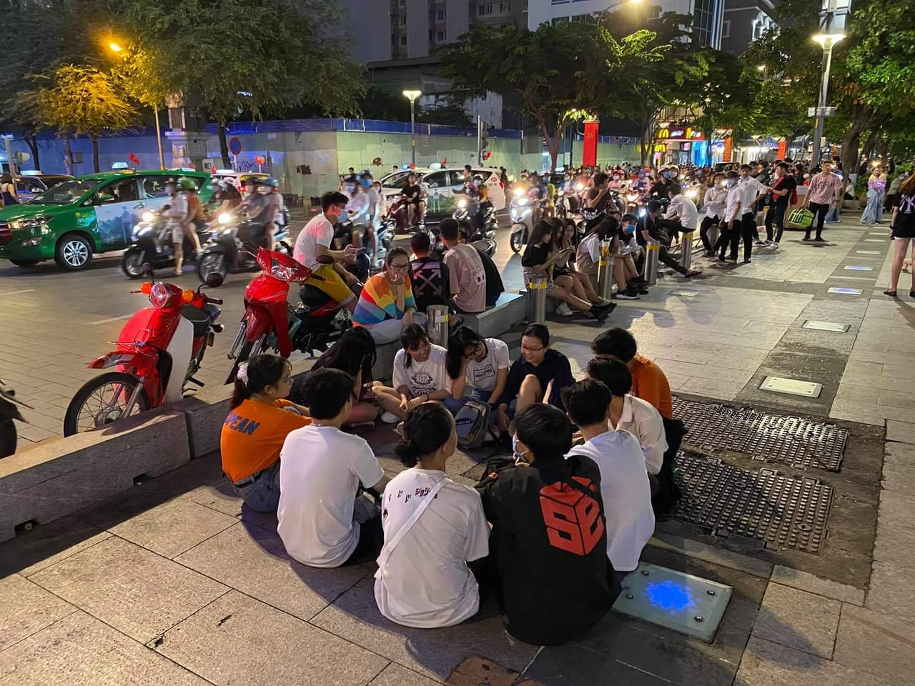 Các bạn trẻ quây quần thành các nhóm nhỏ để trò chuyện, tán gẫu. Ảnh: Minh Đăng