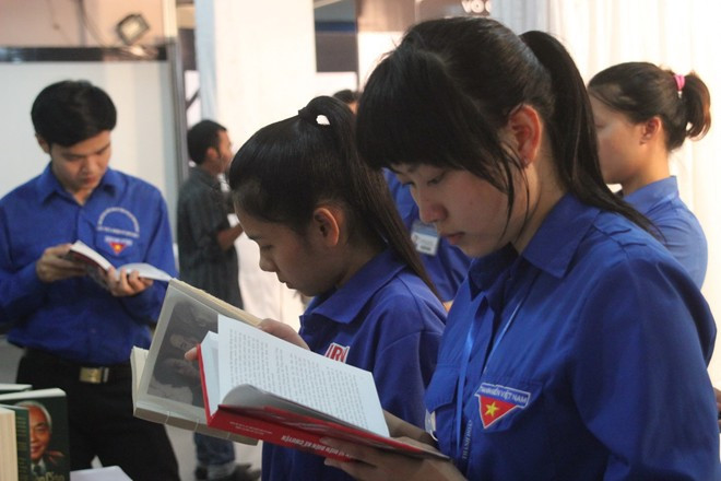 | Nhà Văn hóa Thanh niên chuẩn bị các loại sách viết về Đại tướng ngay cạnh nơi viếng . |