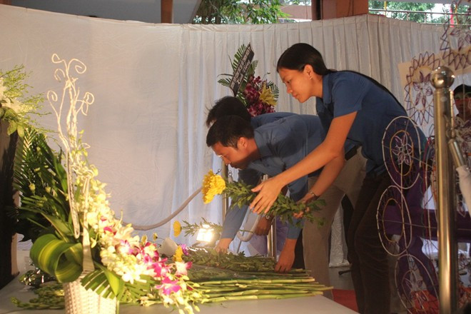 | Đặt những cành hoa trước bàn thờ của Người . |