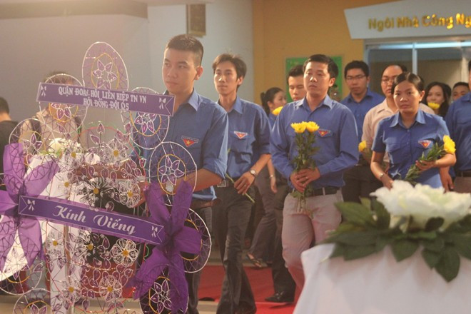 | Hàng trăm đoàn viên thanh niên tất cả các quận huyện và đông đảo người dân đến viếng Đại tướng . |