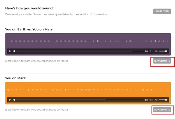 Nếu thử nghe giọng mình trên sao Hỏa mà thấy hay thì bạn còn có thể tải xuống để chia sẻ trên mạng xã hội nữa đấy.
