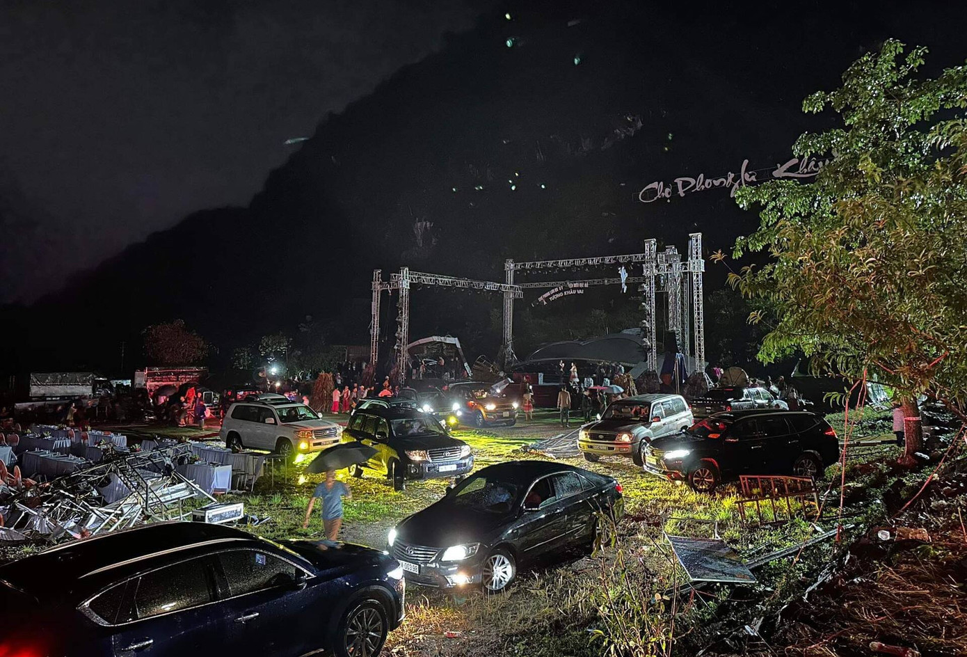| Giông lốc khiến sân khấu lễ khai mạc sụp đổ. Ảnh: Xuyên Nguyễn |