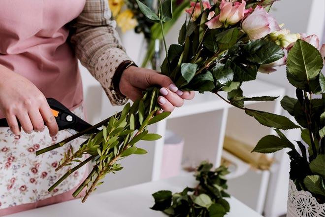 Khi mang hoa hồng đi cắm, bạn cần một chiếc kéo sạch và thật sắc để cắt gốc hoa cho đúng cách. Nếu bạn cắt gốc hoa theo chiều ngang, phần thân cắm dưới đáy bình và vết cắt phẳng khiến hoa không hút đủ nước. Vì thế, bạn nên cắt chéo gốc hoa giúp cành có nhiều diện tích bề mặt hơn để hút nước, như thế sẽ đảm bảo hoa được giữ nước tốt.