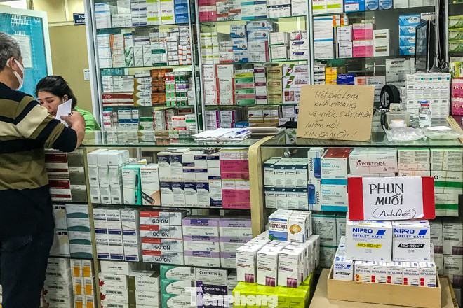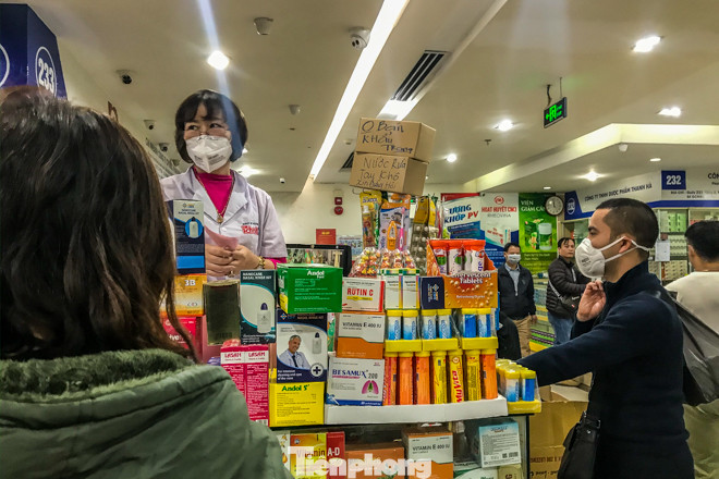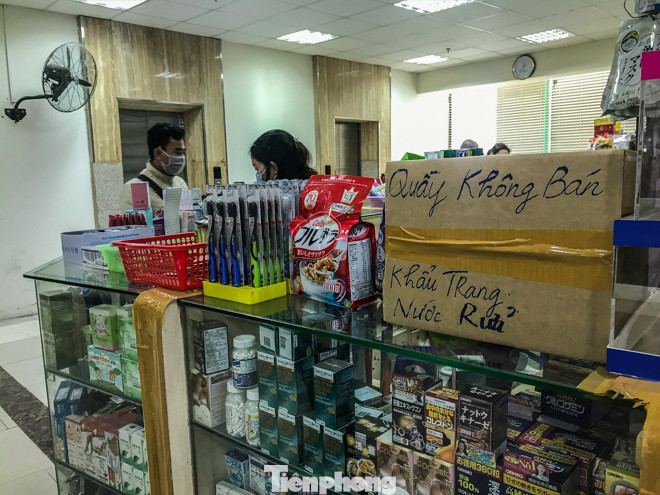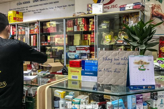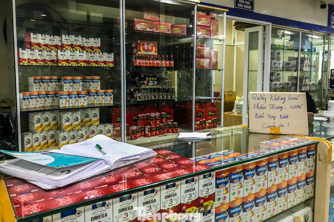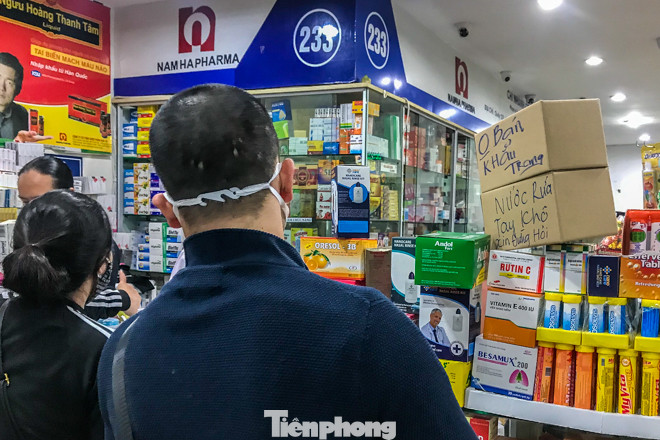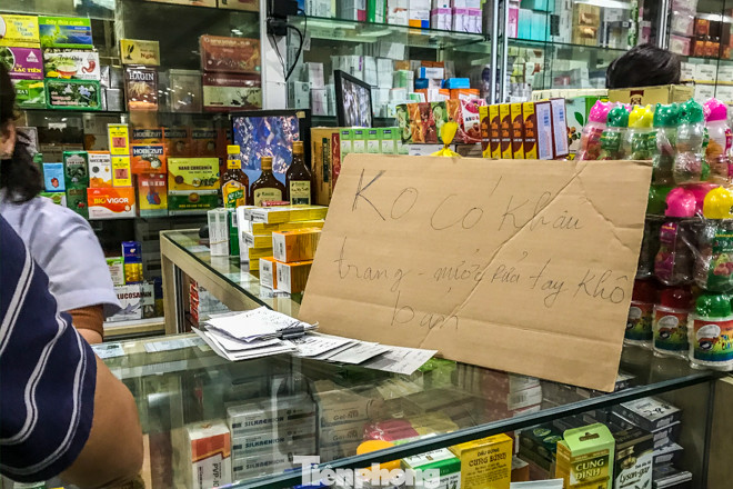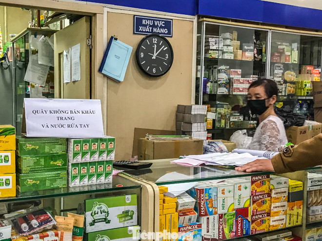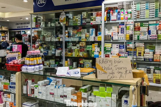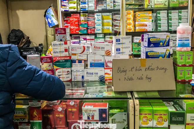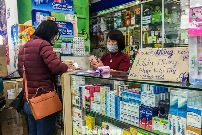 Khi được hỏi về việc mua khẩu trang, dung dịch nước rửa tay khô, chủ quầy thuốc trả lời là hết và "trong một thời gian dài sẽ không có hàng".