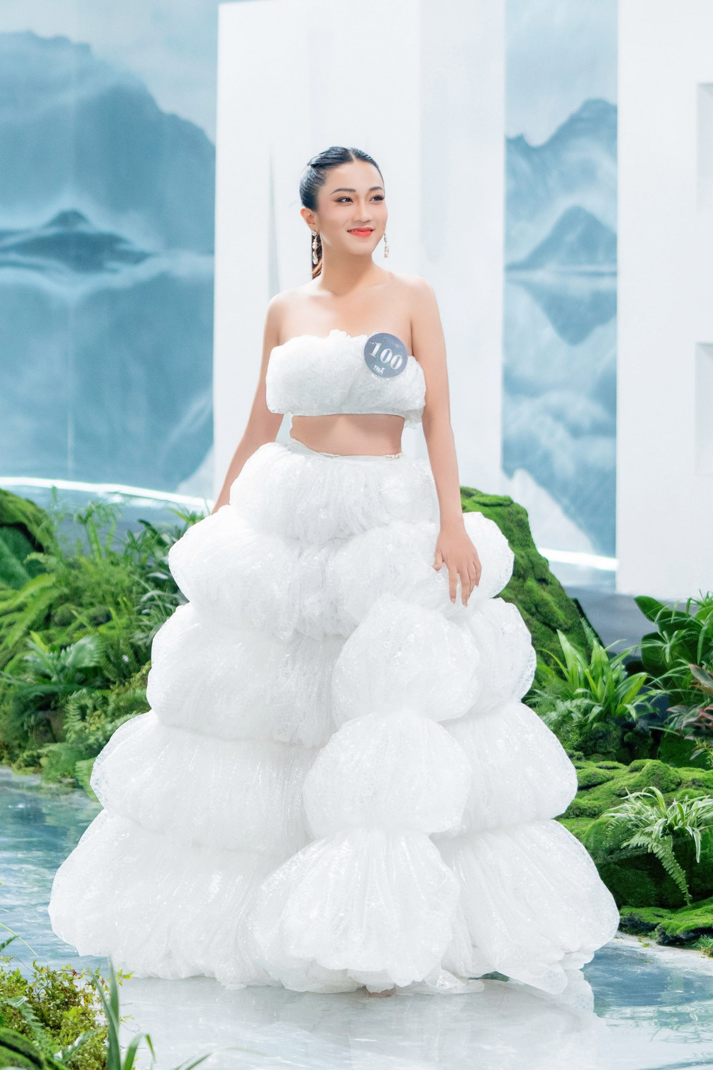 Khán giả chứng kiến những bộ trang phục rất độc đáo và thú vị của các thí sinh được làm hoàn toàn từ những vật liệu tái chế như bao nilon, túi xốp, hạt nhựa, giấy chống cháy, vải vụn… Đây có thể xem là một bộ sưu tập đầy sắc màu gắn với thông điệp bảo vệ môi trường mà các thí sinh gen Z muốn lan tỏa đến khán giả.