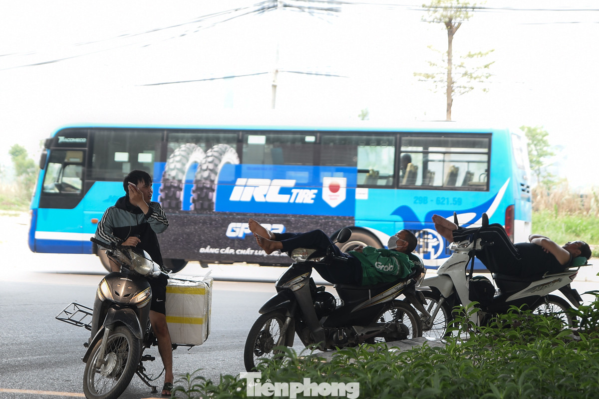 Giữa trưa, người lao động nằm vạ vật dưới gầm cầu để tránh cái nắng như nung