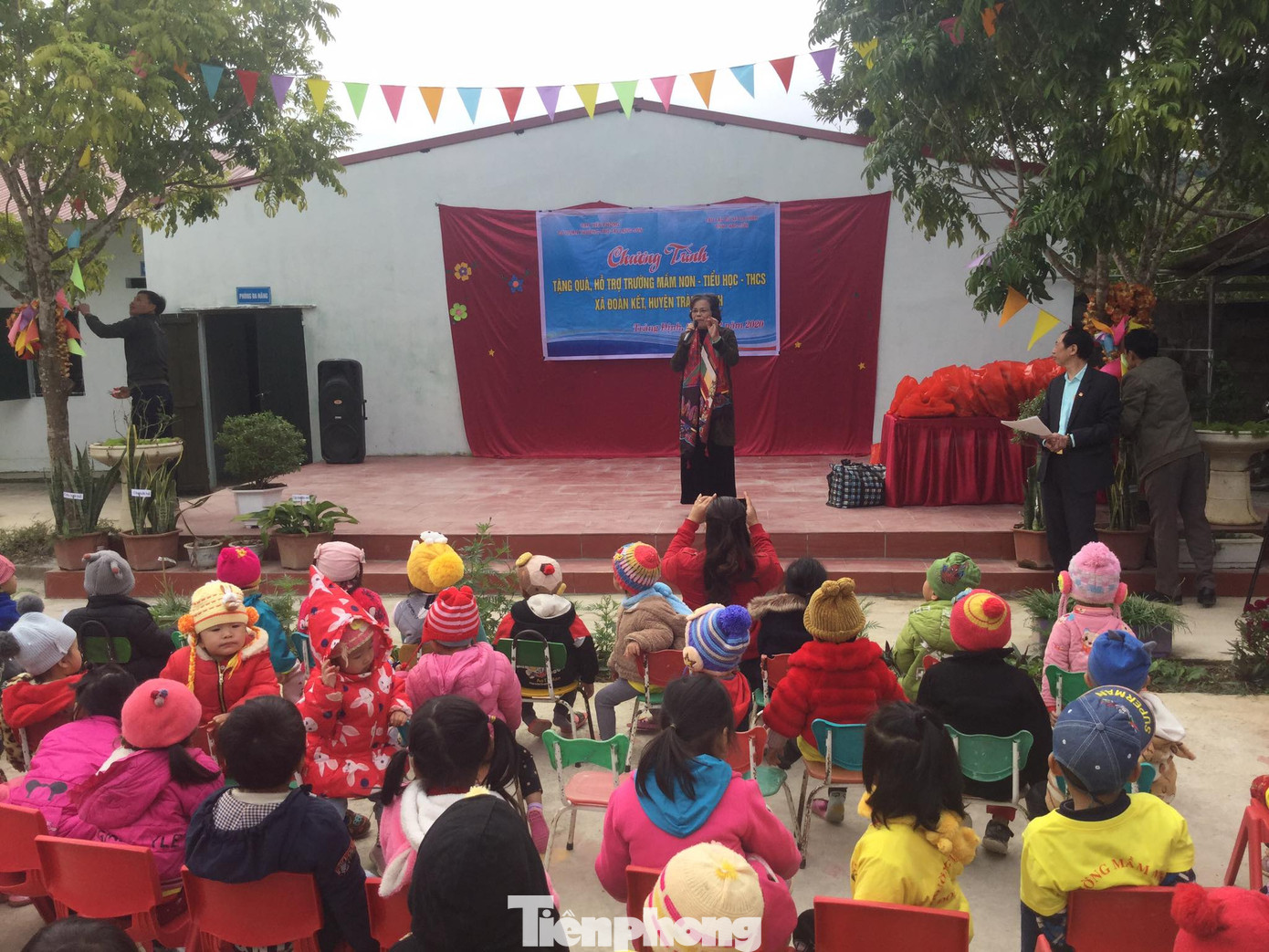 Tại điểm trường mầm non Quyết Thắng, xã Đoàn Kết, huyện Tràng Định, Lạng Sơn, đoàn thiện nguyện trao tặng một máy lọc nước, một bình nước nóng và bồn chứa nước 2.000 lít bằng nhựa, giúp các em có cuộc sống sinh hoạt tốt hơn, nhất là mùa đông rét buốt đang đến.