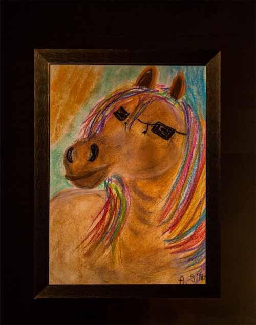 Những tác phẩm này nằm trong bộ Animal 2 do bé tự tay vẽ. Không cần cầu kỳ, những bức tranh khắc họa lại những con vật quen thuộc như gà trống, mèo, hươu cao cổ… Mỗi bức tranh là một nhân vật với tính cách, cá tính, đặc điểm đặc biệt, rất trong sáng, hồn nhiên, hài hước và thú vị.