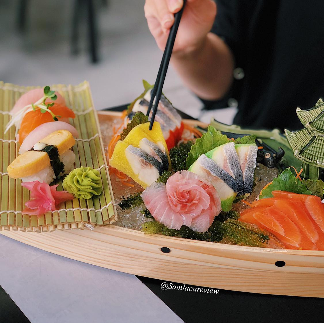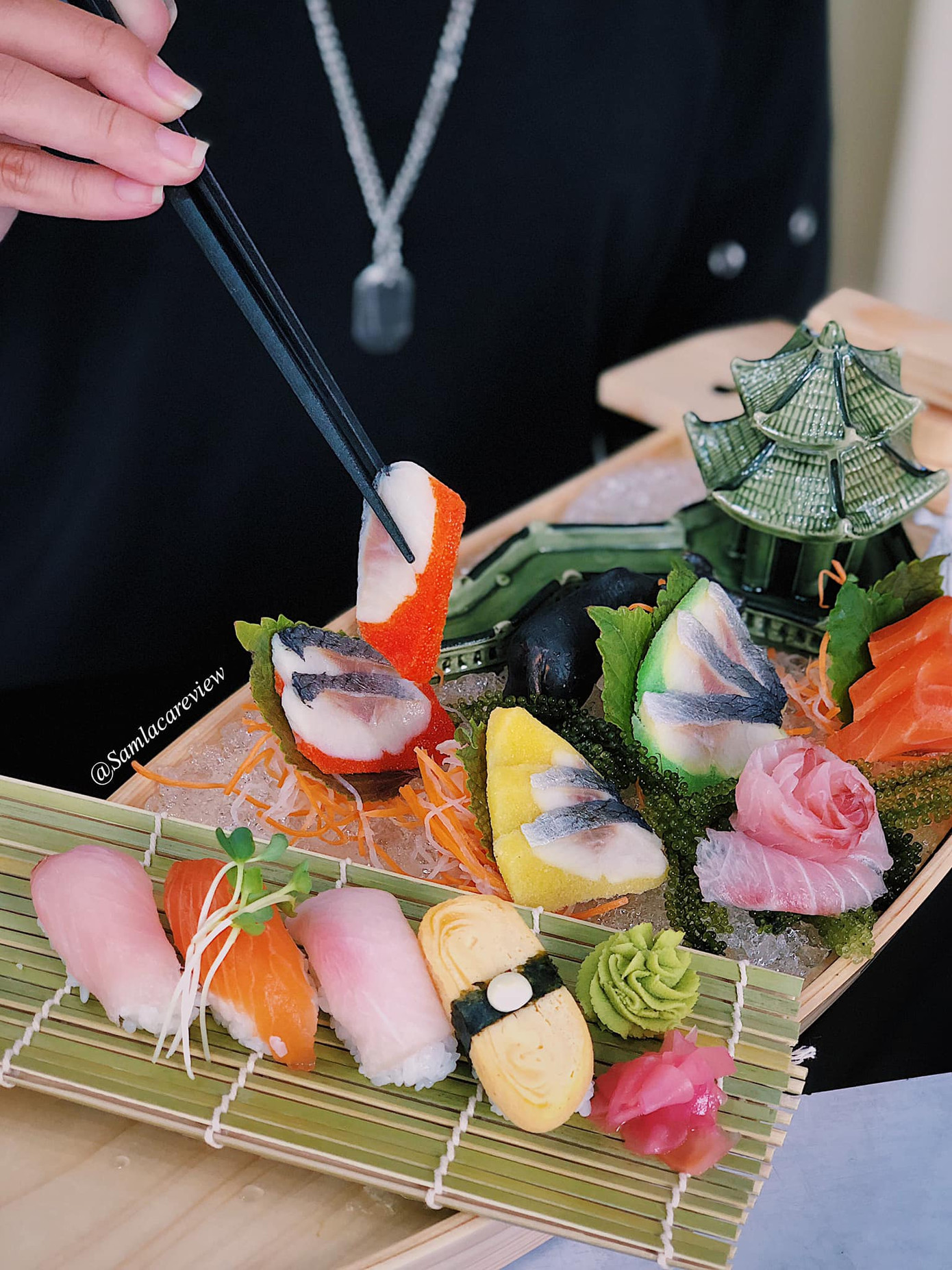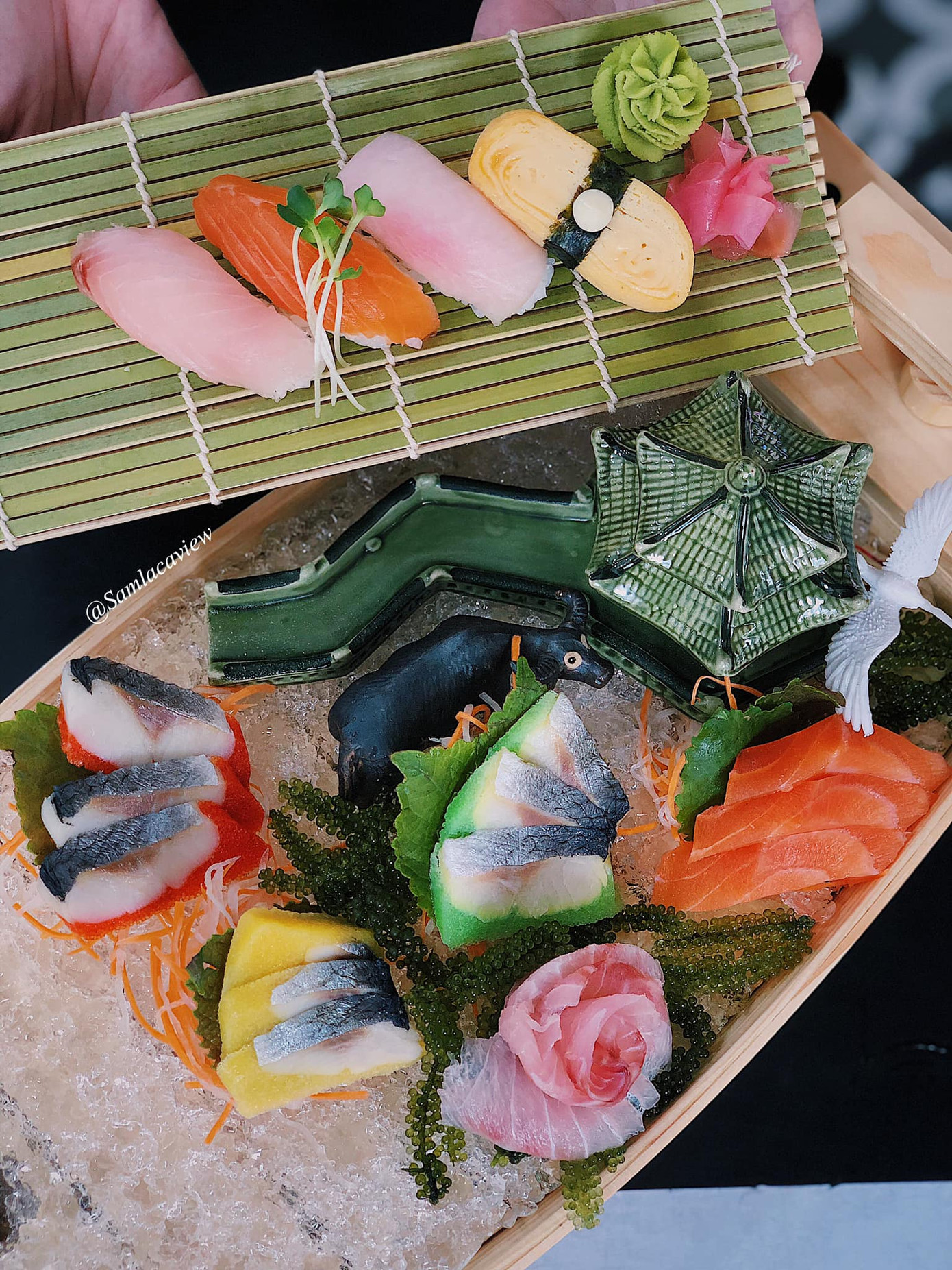 Nói về Nigiri 15K, chỉ có hai từ “tuyệt vời”, miếng cá rất “dày cơm” tuy cơm hơi khô một xíu. Còn “thuyền Sashimi” thì được decor khá đẹp. Phần cá hồi trứng rất đáng đồng tiền bát gạo. Một set tươm tất và đẹp vậy mình tốn tầm 238K. Lãi hơn nữa là mình còn được tặng 1 ly soda cho mỗi phần Sashimi nữa.