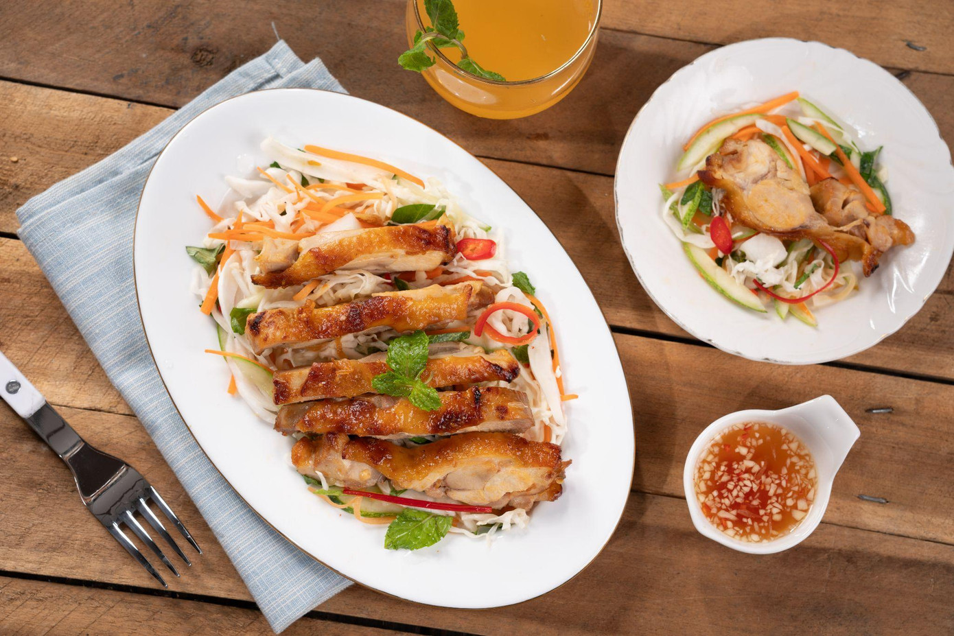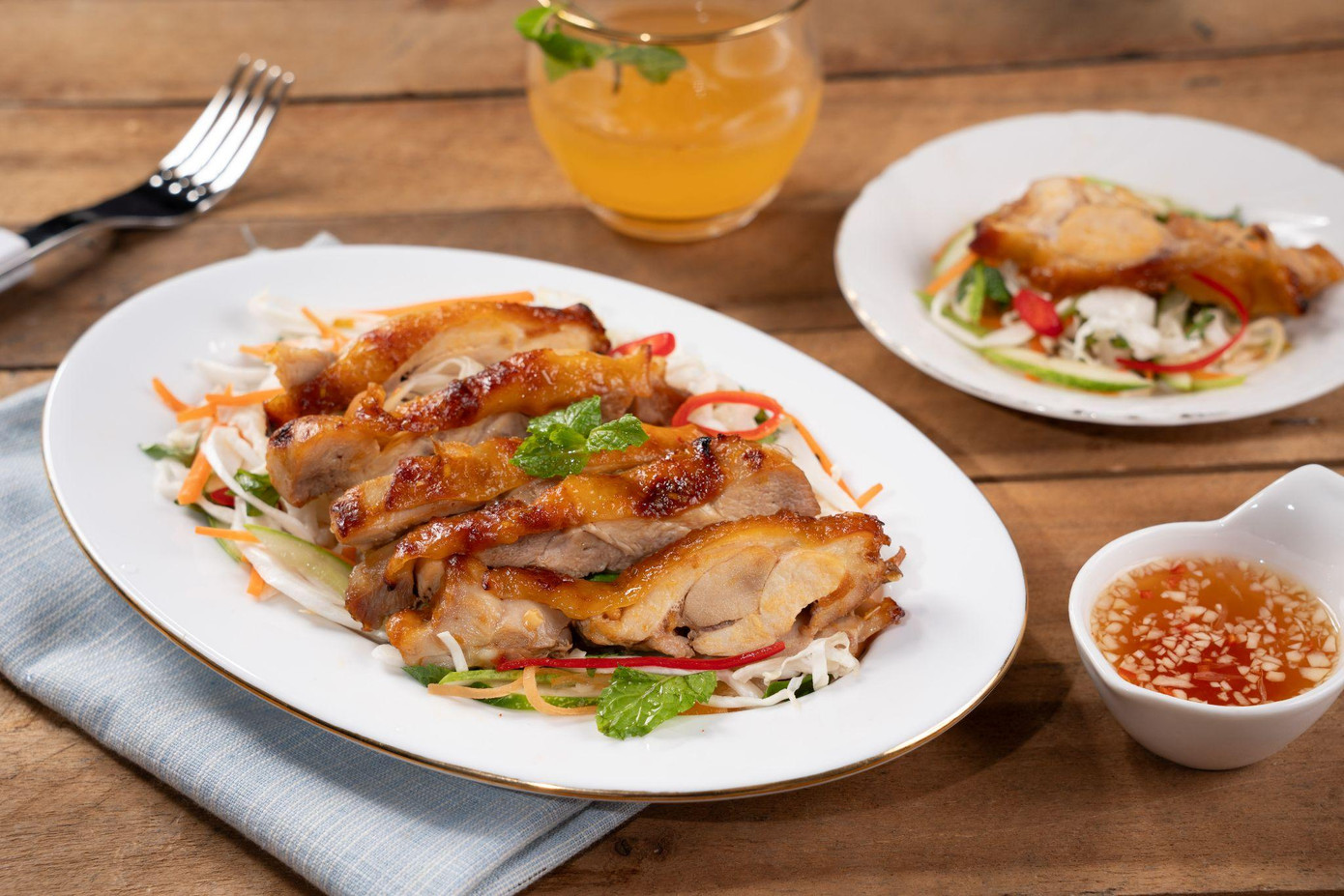 Điểm nhấn của món gỏi này nằm ở phần nguyên liệu chính – thịt má đùi gà Mỹ, thịt gà Mỹ không chỉ thơm ngon mà còn đạt chất lượng cao và đảm bảo an toàn vệ sinh thực phẩm.
