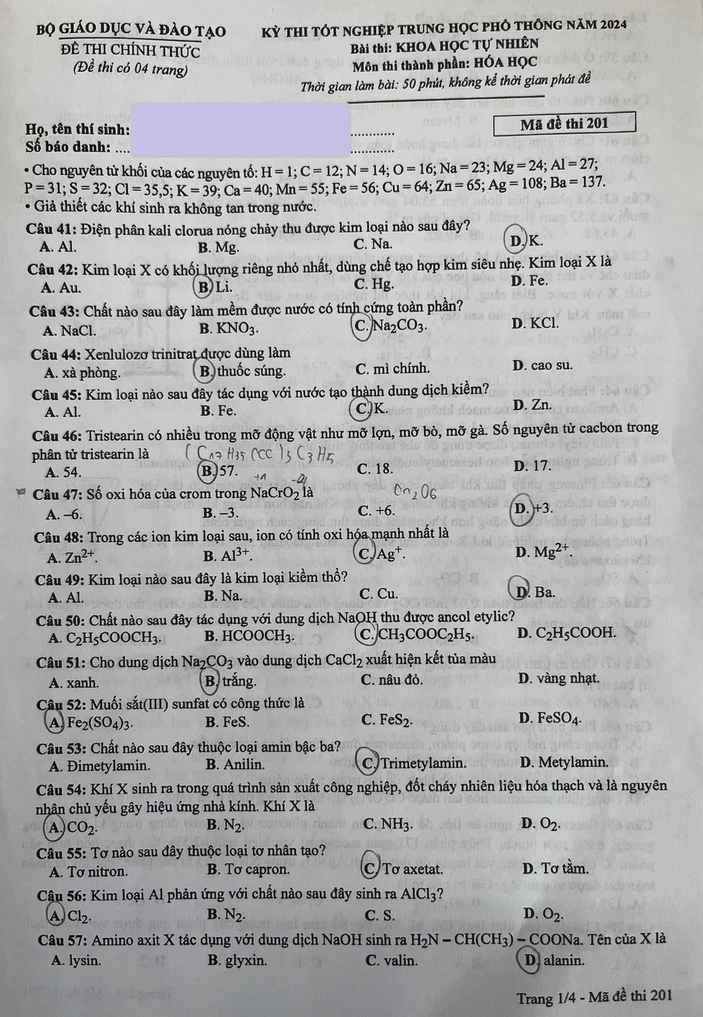 Gợi ý giải đề môn Hóa học: Nguồn Trung tâm Giáo dục Học mãi