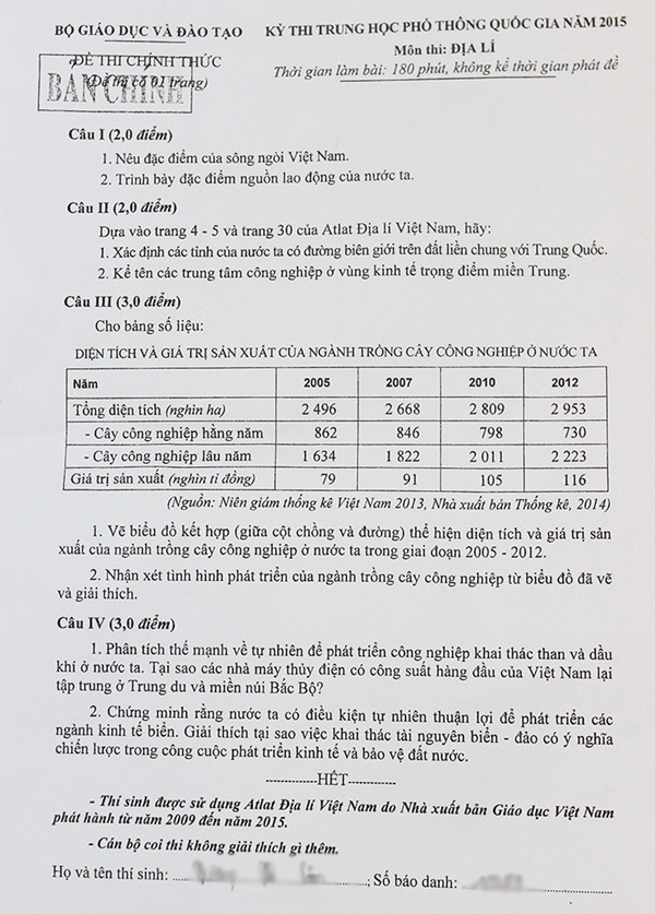 Gợi ý lời giải môn Địa lý kỳ thi THPT quốc gia