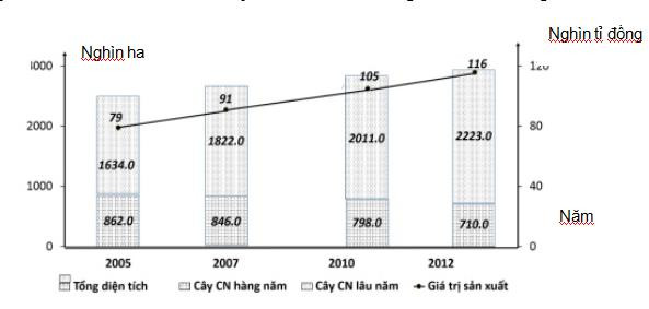 2. Nhận xét tình hình phát triển của ngành trồng cây công nghiệp từ biểu đồ đã vẽ và giải thích.