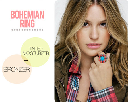 Những chiếc nhẫn hoặc lắc tay, khuyên tai nhiều màu mang phong cách bohemian, hippie phù hợp nhất với kiểu trang điểm tông trầm. Bạn không cần phải quá tỉ mỉ trong từng bước make-up nhưng đừng quên đánh phấn má màu đồng và tô một chút son môi màu nhạt như nude, bóng hồng.