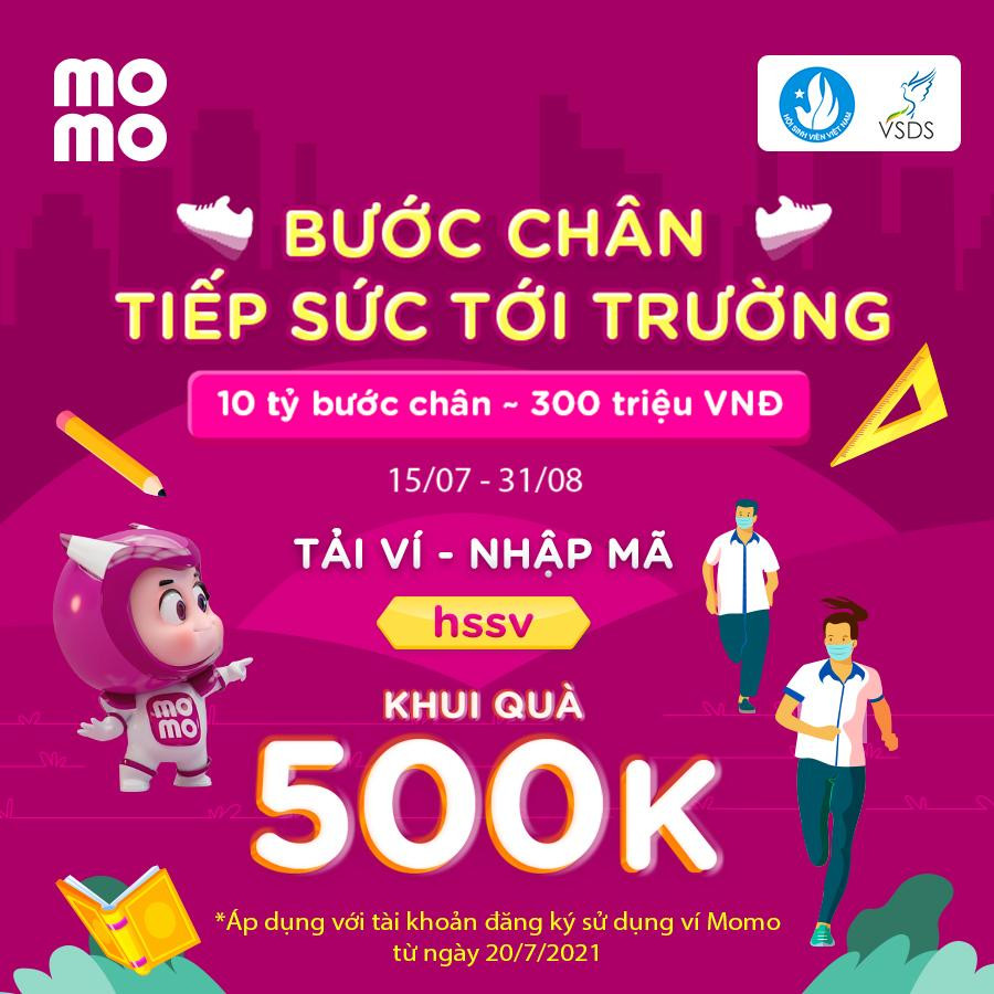 Bên cạnh đó, T.Ư Hội SVVN và ví điện tử Momo còn dành tặng phần quà hấp dẫn trị giá 500.000 đồng cho tài khoản đăng ký sử dụng ví Momo mới khi nhập mã ưu đãi “HSSV”.