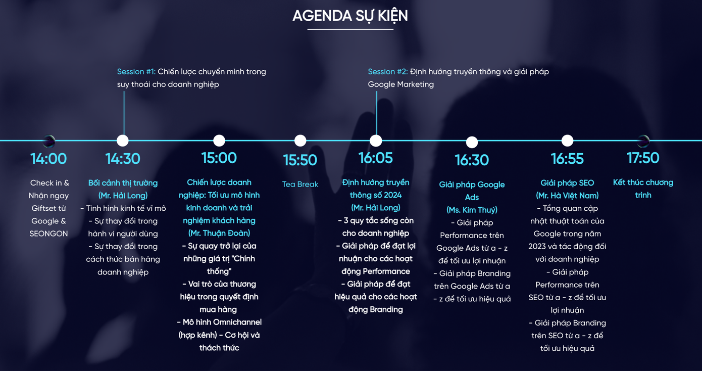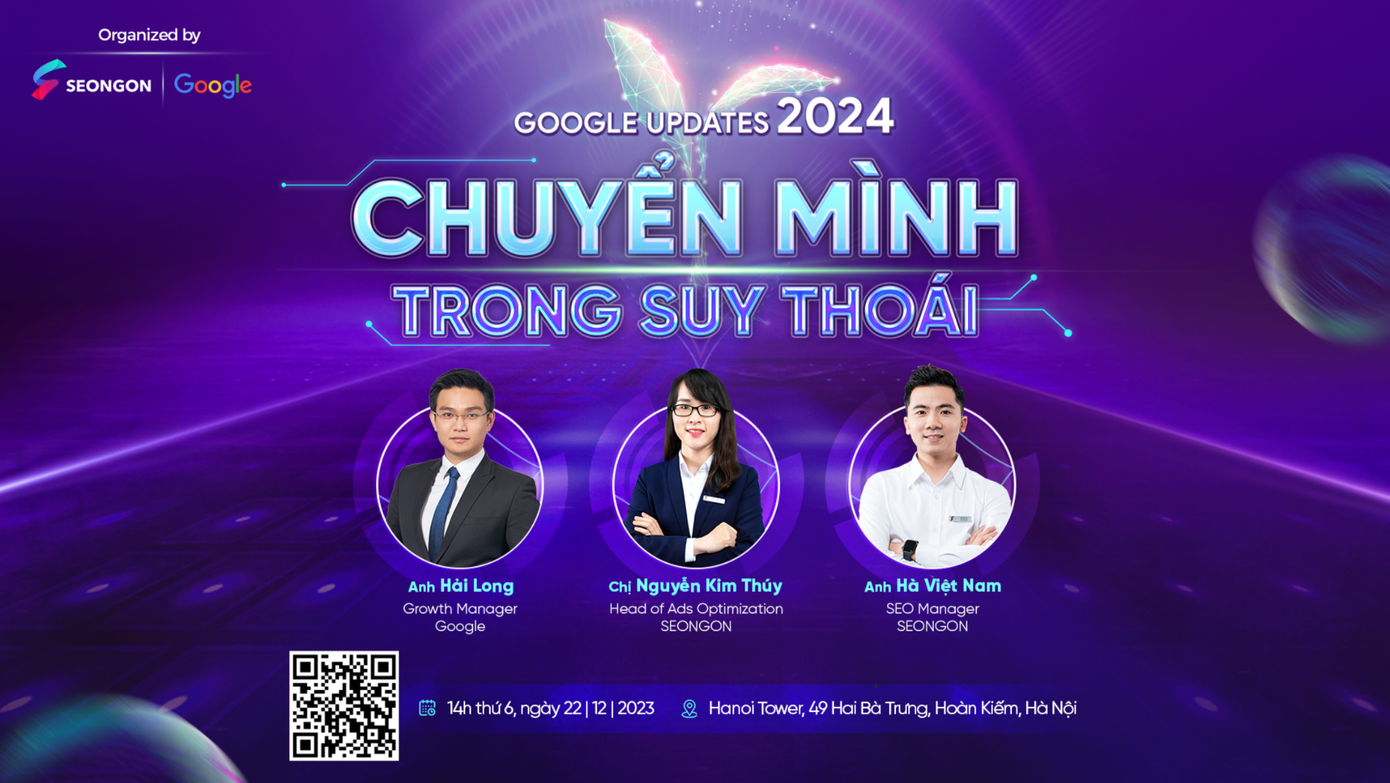 Từ bối cảnh trên, "GOOGLE UPDATE 2024 - CHUYỂN MÌNH TRONG SUY THOÁI" được đồng tổ chức bởi SEONGON và Google sẽ phân tích sự thay đổi trong hành vi người dùng, gợi ý những lối đi mới cho chiến lược Marketing năm 2024 của doanh nghiệp.